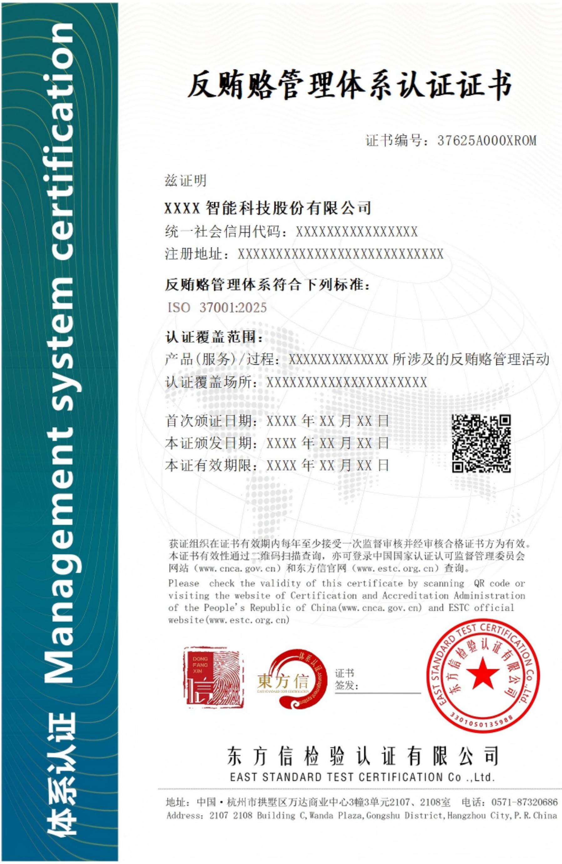 本规则适用于规范东方信检验认证有限公司(以下简称“东方信/ESTC”)开展反贿赂管理体系(ABMS)认证活动。