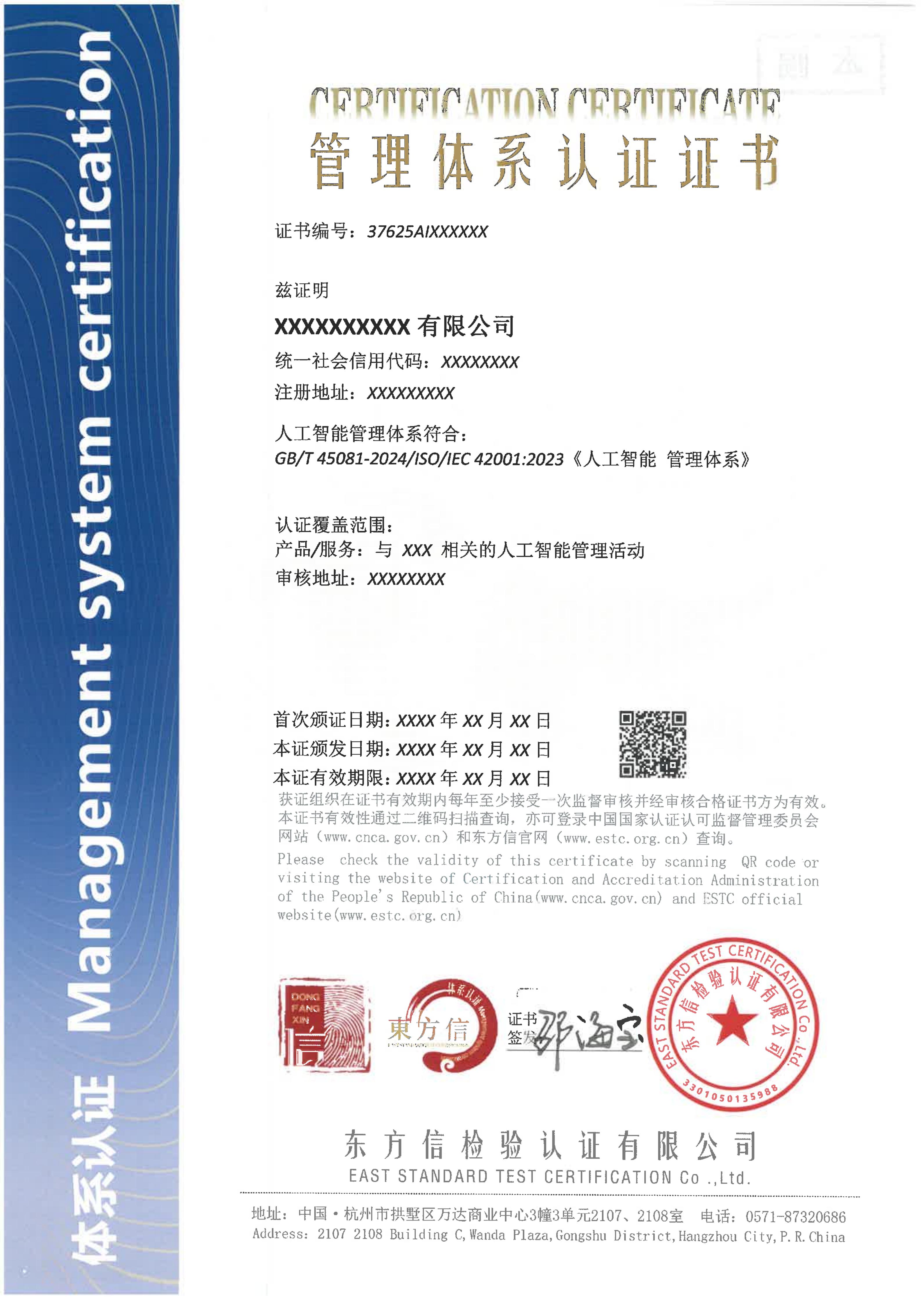 本规则依据国家适用法规和标准规范要求,对人工智能管理体系认证实施过程作出具体规定,明确东方信/ESTC对认证过程的管理责任,保证认证活动的规范有效。