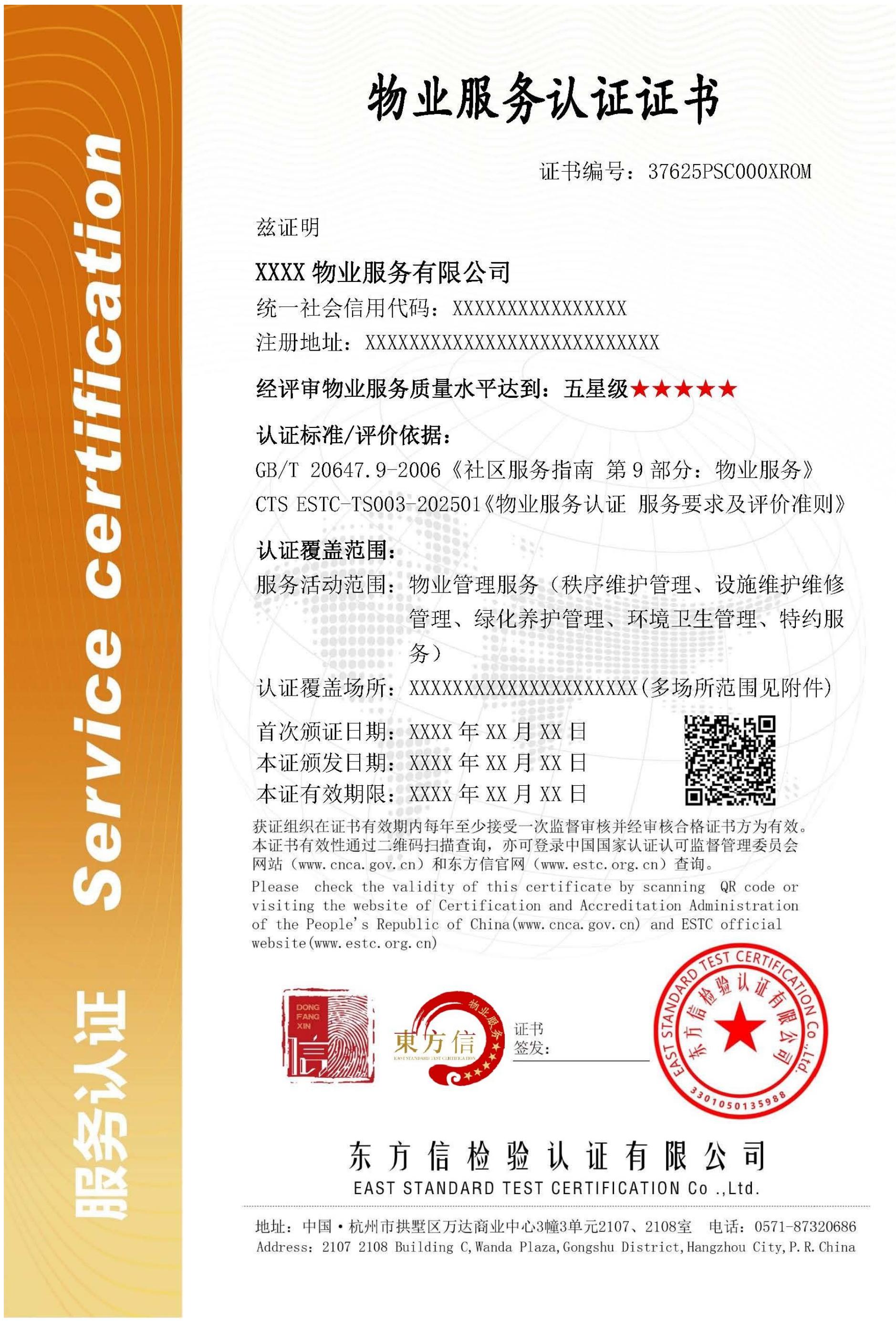 本规则适用于规范东方信检验认证有限公司(以下简称“东方信/ESTC”)开展物业服务认证活动。