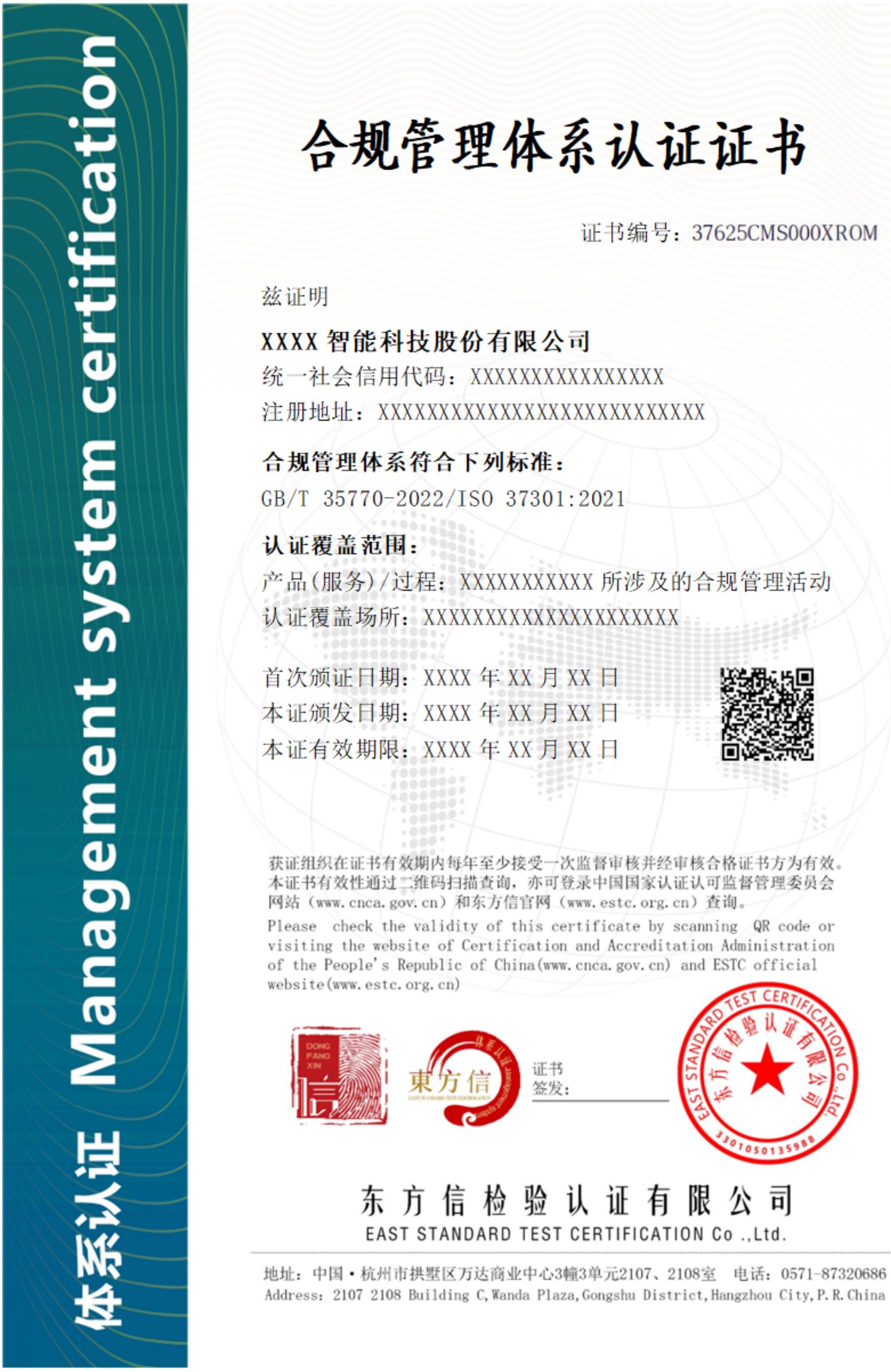本规则适用于规范东方信检验认证有限公司(以下简称“东方信/ESTC”)开展合规管理体系(CMS)认证活动。